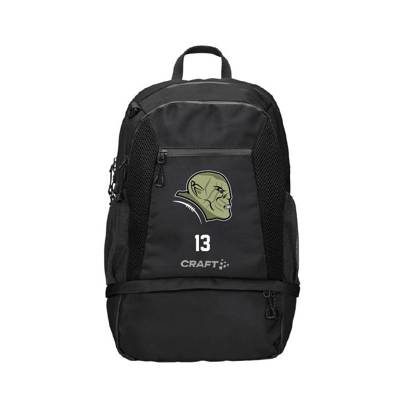 Idealer Rucksack für Trainings, Gym, etc. Leicht, stabil und mit separatem Schuhfach/Wäschefach. Bedruckt mit dem Glarus Orks Logo.